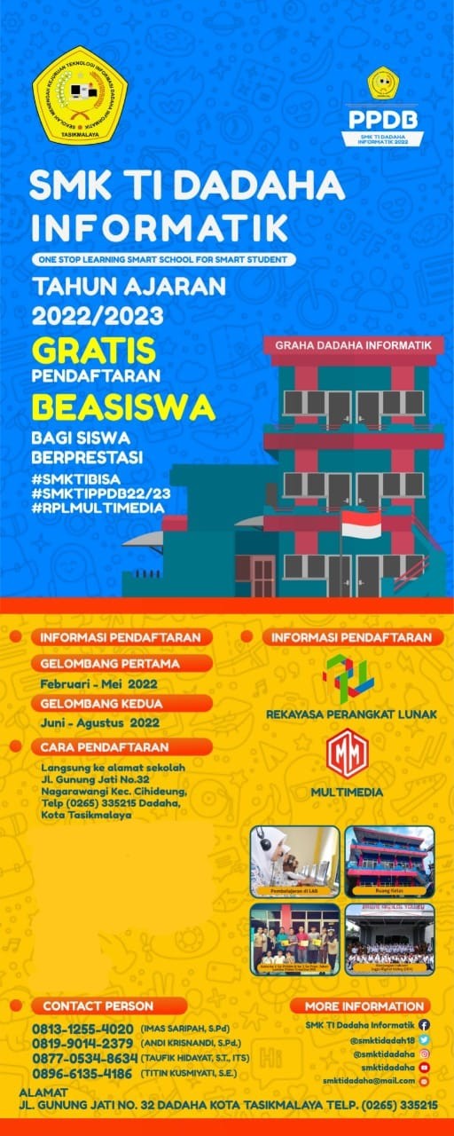 10/08/2022 | BeritaDalam menyambut Tahun Ajaran Baru 2022 2023, SMKTI Dadaha Informatik kembali menerima Siswa baru kls X untuk Kompetensi Keahlian RPL dan MM.